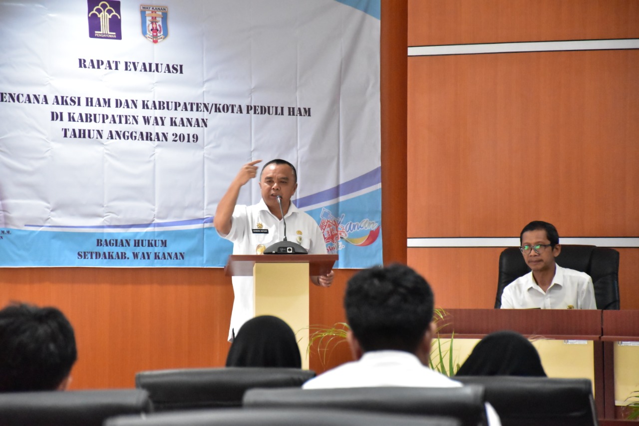 Wakil Bupati Way Kanan H. Edward Antony pimpin Rapat Evaluasi Rencana Aksi Nasional Hak Asasi Manusia (Ranham) dan Kabupaten/kota peduli (KKP) HAM di Ruang Rapat Utama Pemkab setempat, Rabu 28/08/2019.
