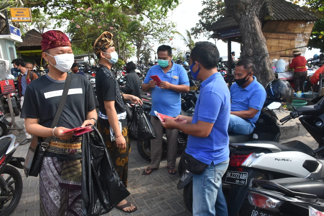 Kegiatan pembagian masker menyasar pengunjung dan pedagang di kawasan Pantai Matahari Terbit. Selain itu juga menyasar penumpang kapal di penyebrangan Sanur-Nusa Penida.