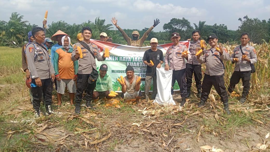 Kapolres Way Kanan AKBP Adanan Mangopang melalui Kapolsek Bumi Agung Ipda Rendy Riski Utama menyampaikan kegiatan Panen Raya Jagung Serentak Kuartal III merupakan bentuk dukungan nyata Polri dalam mendukung ketahanan pangan masyarakat.
